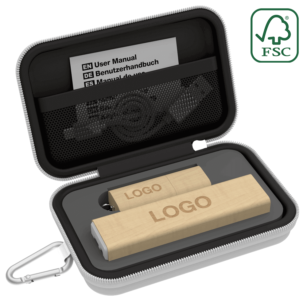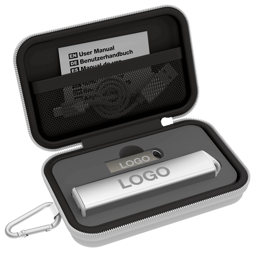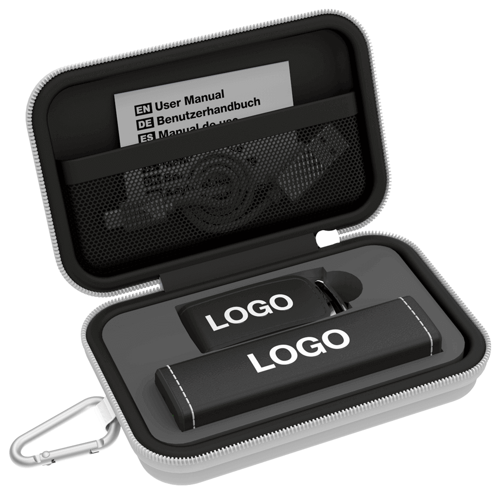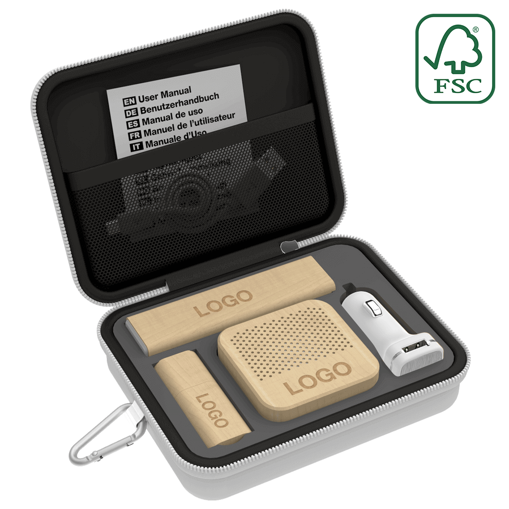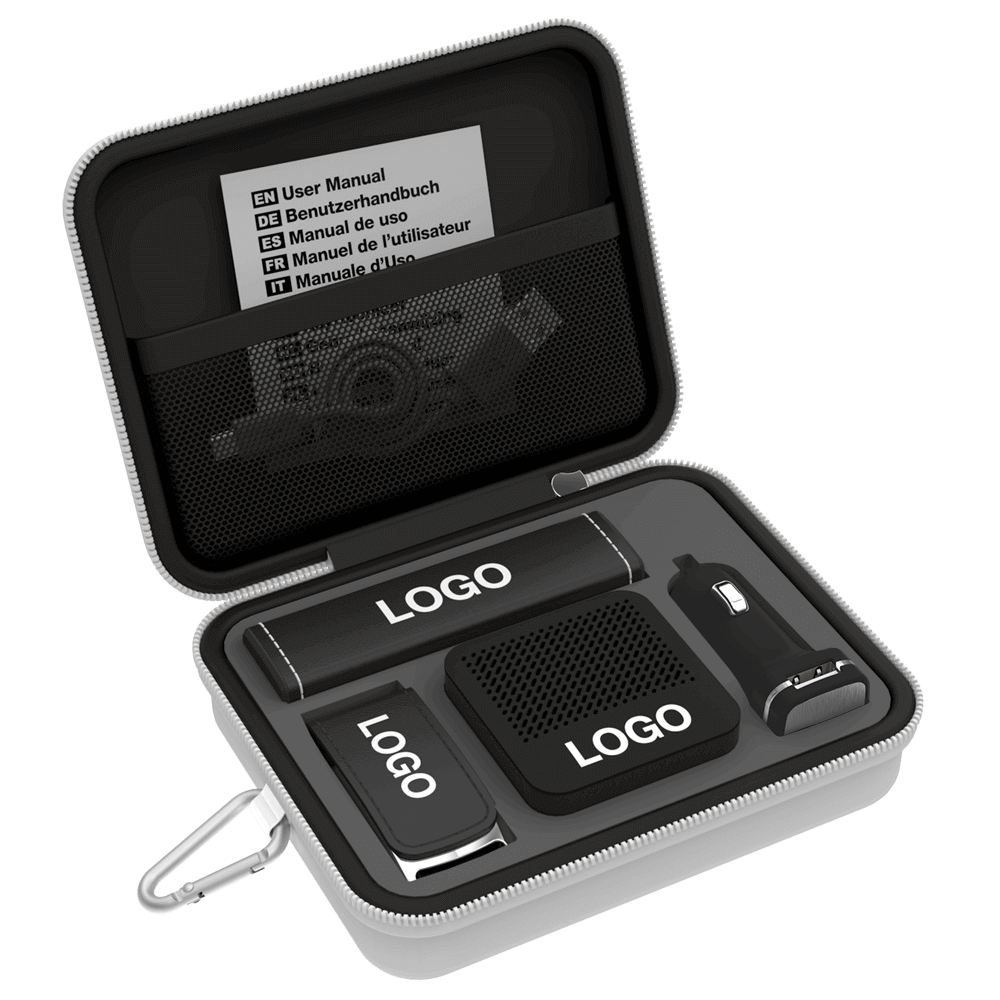Speziell für Werbeaktionen entwickelt, kann das großartige Reisegeschenkset mit Ihrem Logo und Slogan bedruckt werden. Erhältlich in 3 Größen und mit folgendem Inhalt: - Geschenkset S: 1x USB Stick und 1x Powerbank, Geschenkset M: 1x USB Stick, 1x Powerbank und 1x USB-Kfz-Ladegerät, Geschenkset L: 1x USB Stick, 1x Powerbank, 1x USB-Kfz-Ladegerät und 1x Bluetooth® Lautsprecher. Jedes Geschenkeset kommt mit eigenen Karabiner.