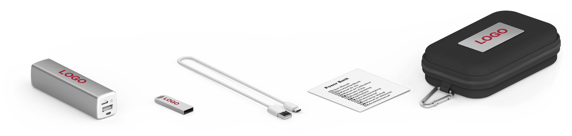Kombinieren Sie 2 Produkte in 1 handlichem Geschenkset: Focus USB Stick, Element Powerbank. Die sorgfältig zusammengestellten Produkte in den Geschenksets können mit Ihrem Logo, Slogan, Kontaktdaten und Statements versehen werden. Die Oberfläche des Geschenksets kann mittels Lasergravur oder im Siebdruck, mit bis zu 4 Farben, gestaltet werden. Jegliche Farbkombinationen sind erlaubt.