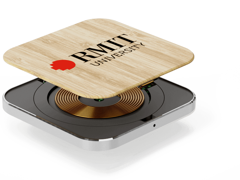 Das Ladegerät verfügt über ein USB-C-Netzkabel für eine zuverlässige Verbindung und ist mit allen Qi-fähigen Geräten, einschließlich Smartphones und Tablets, kompatibel, damit Ihre Kunden und Mitarbeiter den ganzen Tag über mit Strom versorgt sind.