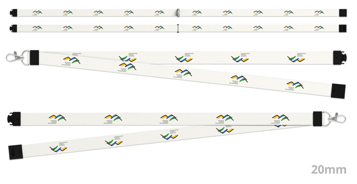 Das Summit-Schlüsselband kann mit Ihrem Design, Logo und mehr bedruckt werden – in echtem Stil. Das Summit-Schlüsselband besteht aus weichem Bambusgewebe und ist für den Einsatz bei Konferenzen, Meetings und Veranstaltungen konzipiert. Es verfügt über einen praktischen Metallverschluss und eine Sicherheitsschnalle, die sich löst, wenn es hängen bleibt oder versehentlich daran gezogen wird.