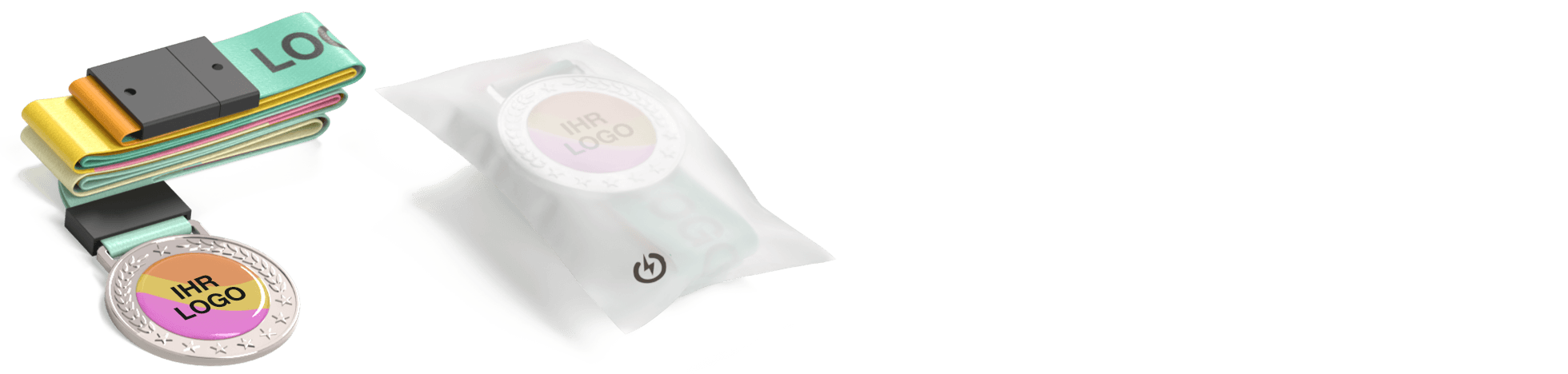 • Fügen Sie Ihr Logo und Ihren Claim auf dem Umhängeband hinzu