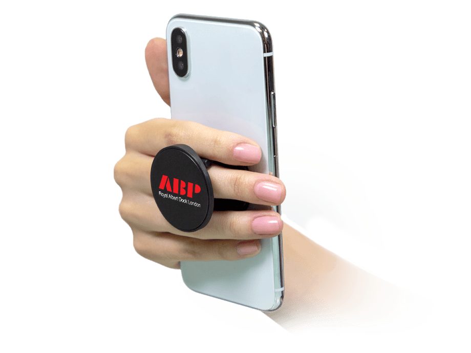 Der Handy Ringhalter Grip ist ein handliches Zubehör, perfekt geeignet als Giveaway für Ihre nächste Veranstaltung oder Konferenz. Auf einer großen Druckfläche können wir Ihr Logo, Ihren Slogan, Ihre Website-Adresse und vieles mehr mit Fotodruck anbringen. Der Grip lässt sich einfach über eine selbstklebende Rückseite auf dem Handy befestigen und ist in den Farben Schwarz, Weiß, Blau oder Rot erhältlich.