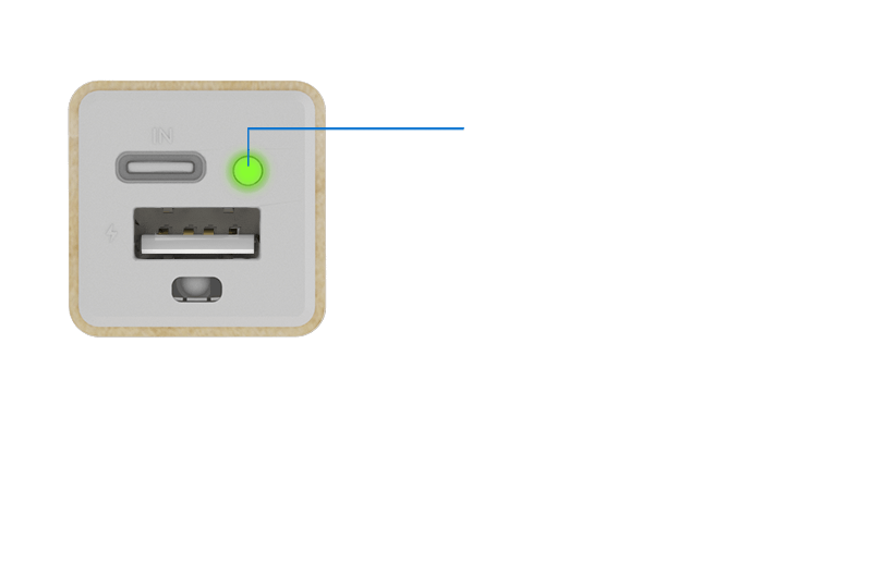 - Durch einfaches Drücken des Knopfes erscheint die Ladeanzeige