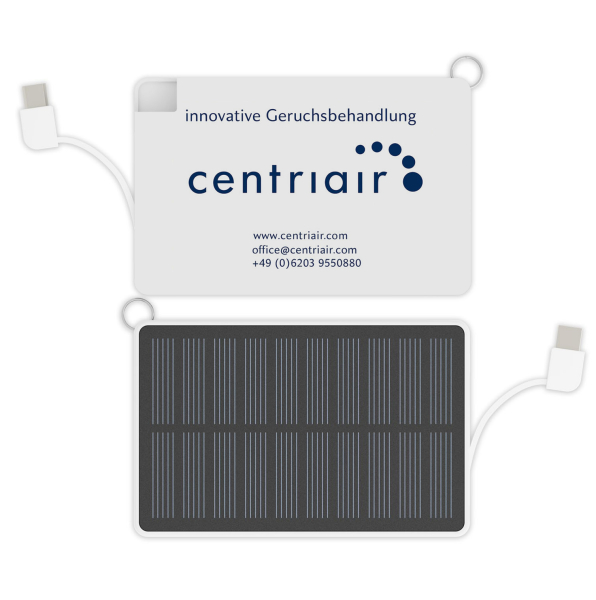 Die Powerbank mit der Solar Card Marke ist perfekt, um Ihre Marketingkampagnen und Messestände aufzuladen.