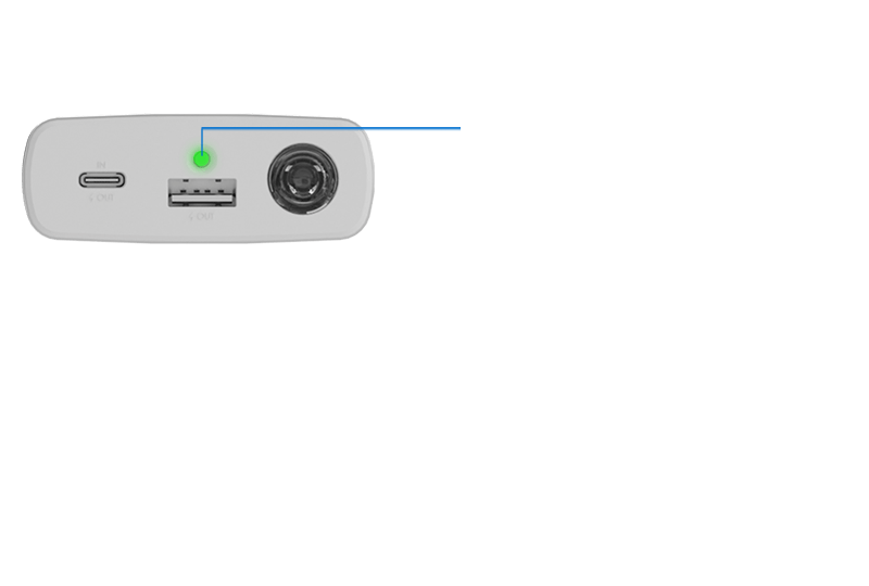 - Durch einfaches Drücken des Knopfes erscheint die Ladeanzeige