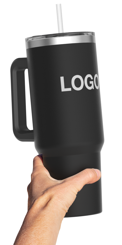 Der Jumbo Reisebecher ist ein beliebtes Tumblermodell mit doppelwandiger Isolierung, komfortablem Griff, sicherem Easy-Sip-Deckel und einem Strohhalm aus Tritan™, einem Kunststoff bekannt für dessen Haltbarkeit. Der spezielle Druckbereich kann mit Ihrem Logo, Slogan und vielem mehr individuell gestaltet werden - und das alles in präzisen Details. Kontaktieren Sie uns noch heute für Preise, Expresslieferzeiten und Muster.