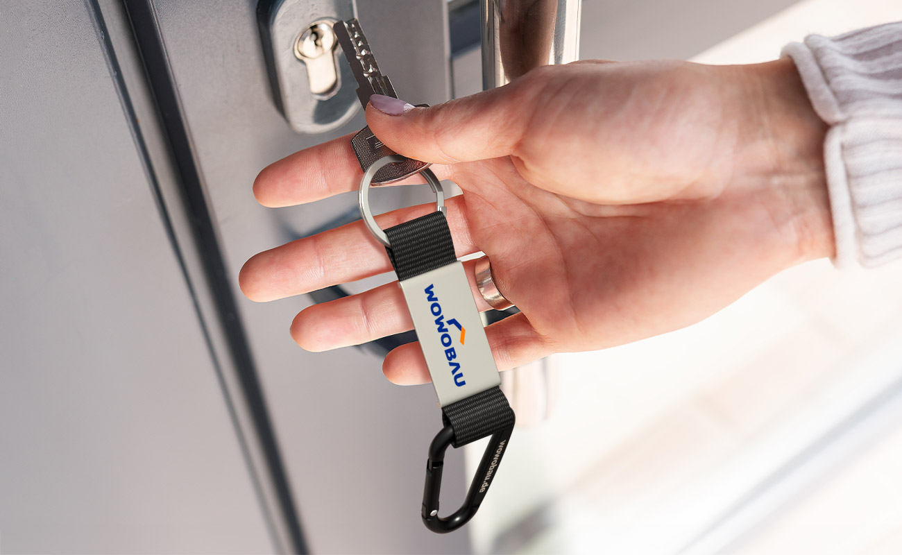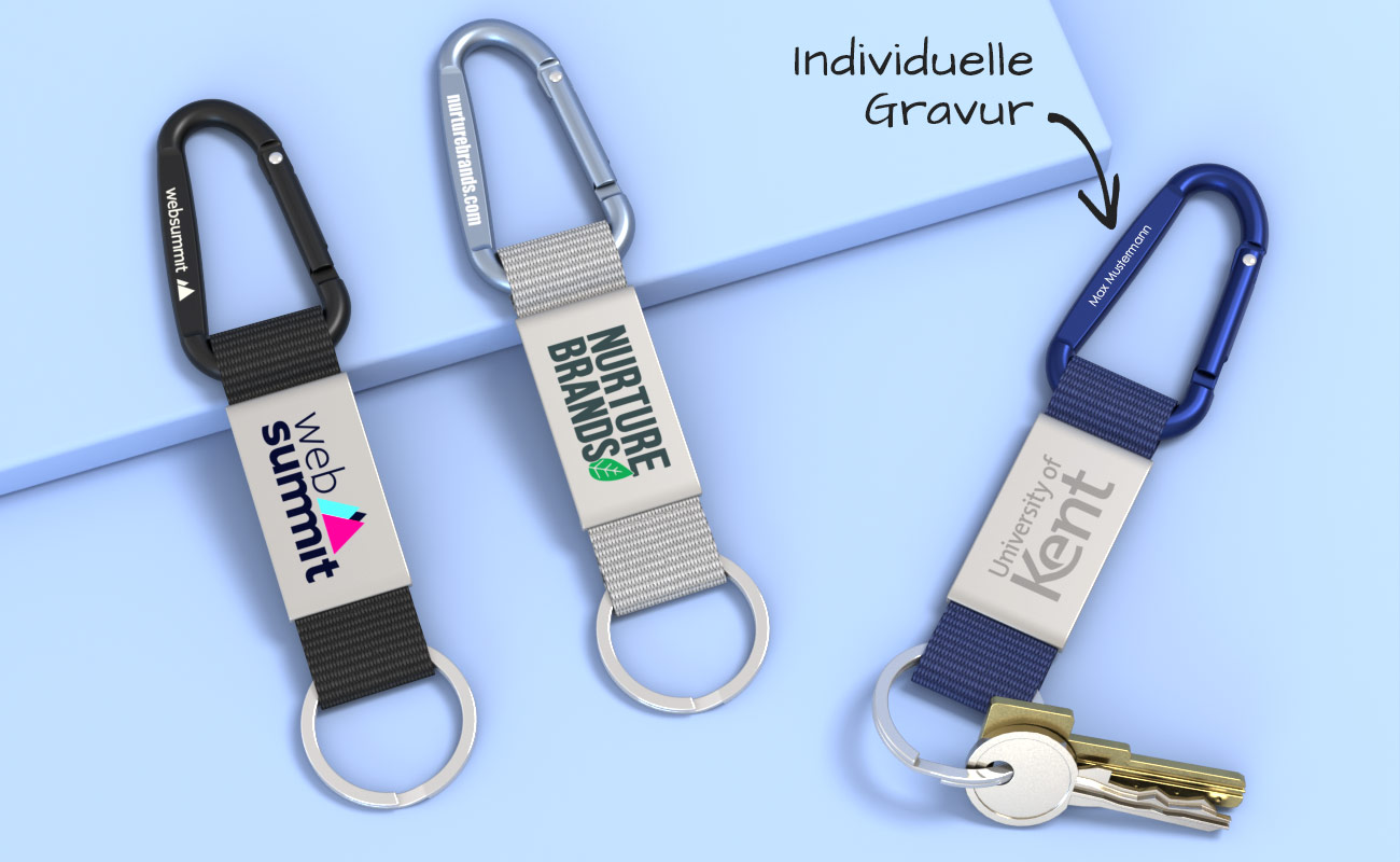 Unser Anker-Schlüsselanhänger ist ein stilvoller Werbeartikel, der für den täglichen Gebrauch konzipiert ist und Ihnen eine hervorragende Markenpräsenz verschafft. Er verfügt über einen Karabinerhaken an einem Ende, der einen speziellen Bereich für Ihr Branding bietet, und eine Spaltringöse am anderen Ende, um Ihre Schlüssel sicher zu befestigen. Das Metallteil, das um das Band gewickelt ist, kann ebenfalls mit Ihrem Logo, Slogan und mehr versehen werden.