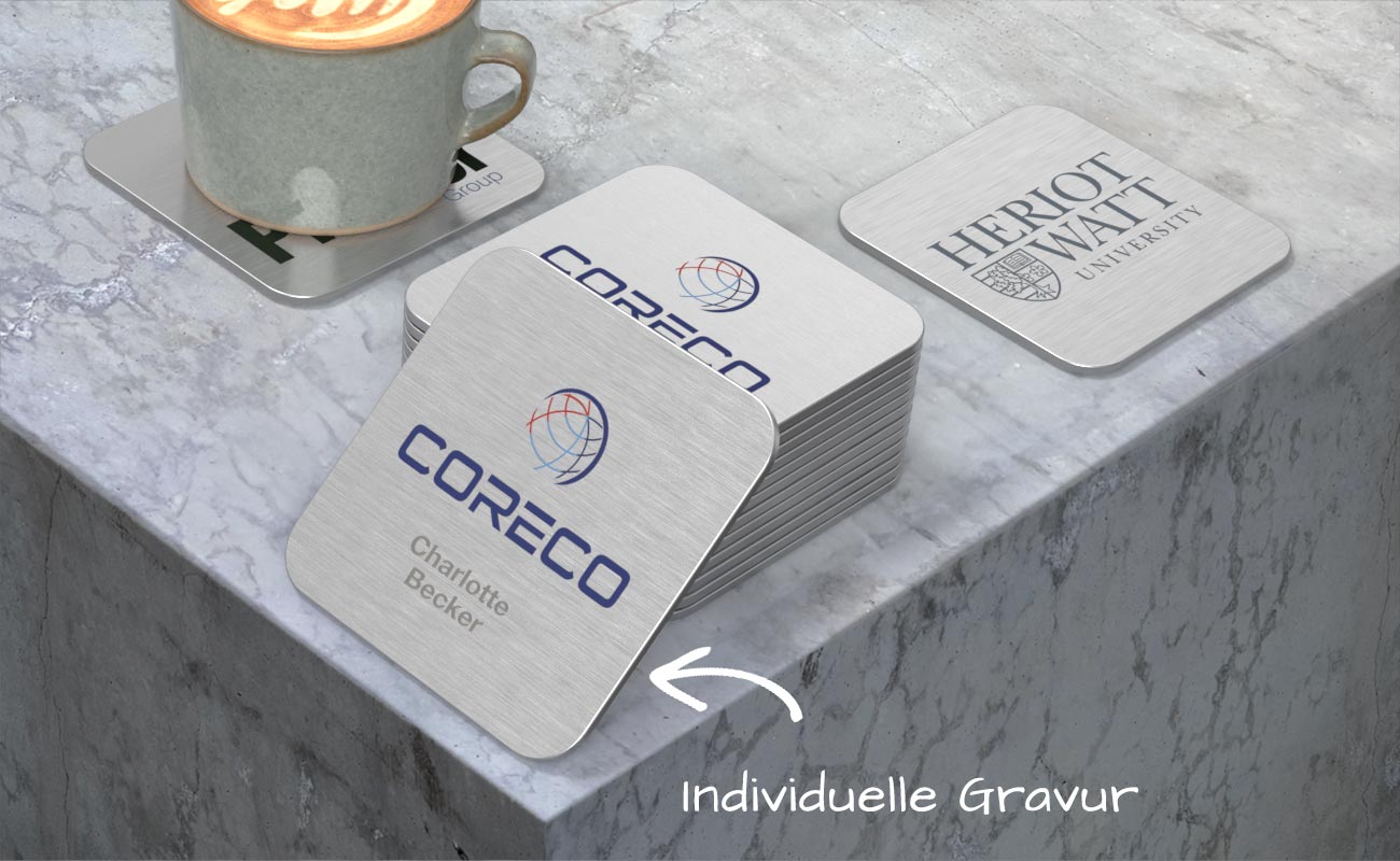 Der Untersetzer Disc ist ein beliebtes & langlebiges Werbegeschenk. Die ansprechende Oberfläche aus gebürsteter Aluminiumlegierung kann mit Ihrem Logo, Slogan und mehr versehen werden. Die Unterseite besteht aus einem rutschfesten Korkmaterial. Kontaktieren Sie uns über die Angebotsfunktion für Preise, Informationen zum Branding und Lieferzeiten.