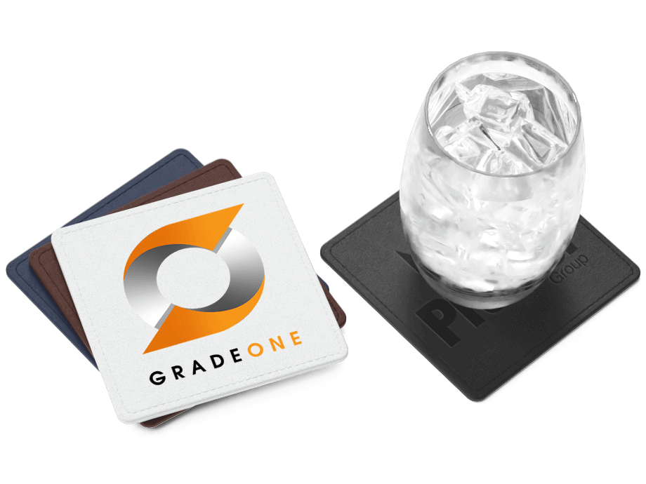 The Verde faux leather Coaster combines sophistication and durability in one stylish design. Made from premium PU leather with a sturdy insert board, it keeps its shape and protects surfaces from spills and heat marks. Its square shape offers a clean, modern look - perfect for offices, events, or client gifts. Get in touch today for prices, branding information and to request samples.