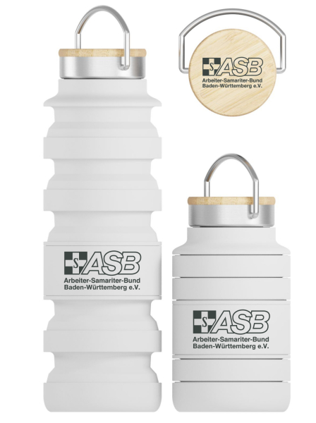 Die Silikon-Trinkflasche Flexi ist ein innovatives Modell und ein wahrer Blickfang. Sie ist so konzipiert, dass sie zusammengefaltet werden kann, um Platz zu sparen. Mit 2 vorgesehenen Druckbereichen für Ihr Logo auf Deckel und Körper, kombiniert diese Flasche Stil und Funktionalität in einem. Der Deckel (aus Bambus und Edelstahl) verfügt außerdem über eine praktische Trageschlaufe, um auch unterwegs ein praktischer Begleiter zu sein. Eine beliebte Wasserflasche für eine jahrelange Verwendung.