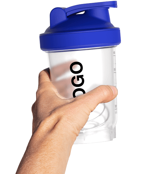 Unsere Mix-Shaker-Flasche ist in 4 Standard-Deckelfarben erhältlich, die Sie mit Ihrem Logo kombinieren oder kontrastieren können, um einen auffälligen Look zu erzielen.